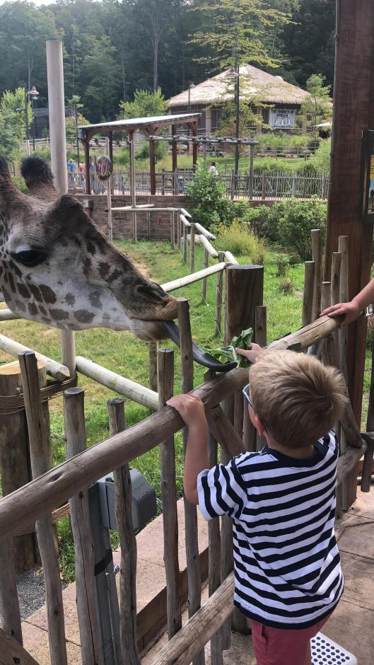 Celebrating the 1st day by feeding a giraffe!